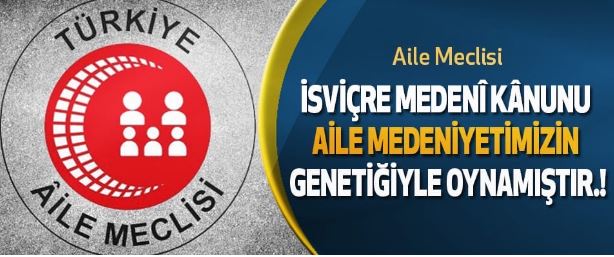 Aile Meclisi: Aileyi Nesli Devleti Korumak için; Anayasa, kanunlar, eğitim müfredatı islamileşmeli! Aile Meclisi İsviçre medenî kânunu aile medeniyetimizin genetiğiyle oynadı! Bâtıllaştık! Aileye Fıtrata ve Allah’a savaş ilan edilerek Ailemizi..