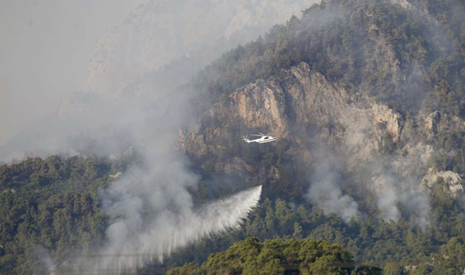 Antalya’nın Kemer ilçesindeki orman yangınında söndürme çalışmaları sabahın ilk ışıklarıyla havalanan helikopter ve uçaklar ile devam ediyor.