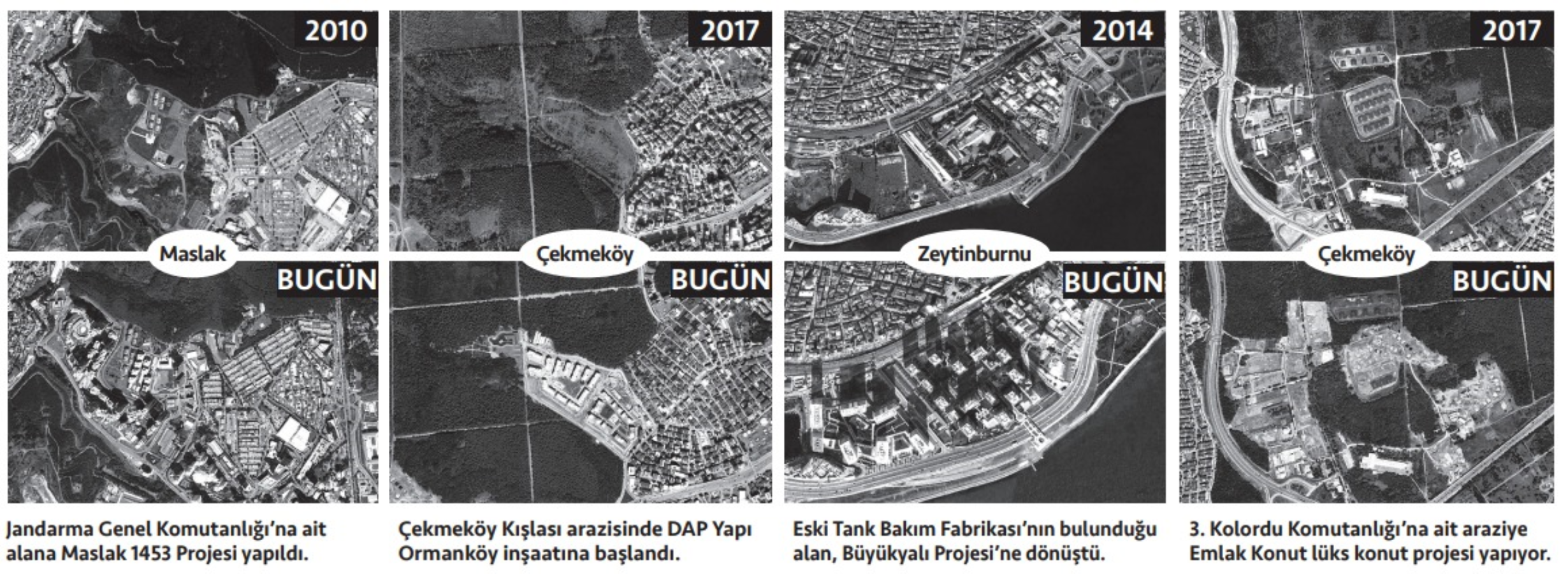 İstanbul’un yüzde 10’unu oluşturan askeri kışlaları boşaltan AKP iktidarı, “Buralar yeşil alan olacak” sözüne karşın arazileri birbiri ardına konut rantına açtı. Bakırköy, Beşiktaş, Sarıyer ve Çekmeköy’deki kışlalarda lüks konutlar yükselmeye başladı.