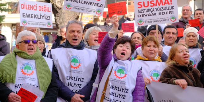 Hükümetin emekli maaşı zammına tepkiler sürüyor. Eskişehir’de sokağa çıkan emekliler, “Ekmeği, zeytini, çayı, suyu, yağı hepimiz aynı fiyatlardan alıyoruz, peki bu maaş ayrımcılığı neden?” diye sordu. Tüm Emeklilerin Sendikası Eskişehir..