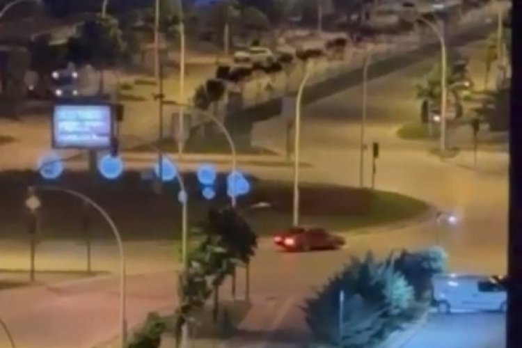 Bursa’da bir otomobil sürücüsü gece yarısı çıktığı kavşakta dakikalarca drift atarak apartman sakinlerini ayağa kaldırdı. Trafik magandasının dakikalarca kavşakta yanlayarak döndüğü anlar vatandaşların kamerasına yansıdı.