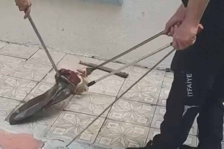 İhbar üzerine olay yerine gelen Bursa Büyükşehir İtfaiye Daire Başkanlığı ekipleri, kaldırımın üzerinde kaçmaya çalışan yılanı uzun uğraşlar sonucu yakalamayı başardı.