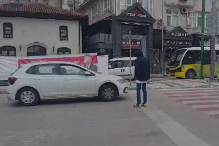 Bursa Çekirge Meydanı’nda kimliği henüz öğrenilemeyen bir şahıs trafiğin aktığı sırada yol ortasında durarak hem kendi canını hem de sürücülerin canını tehlikeye attı.