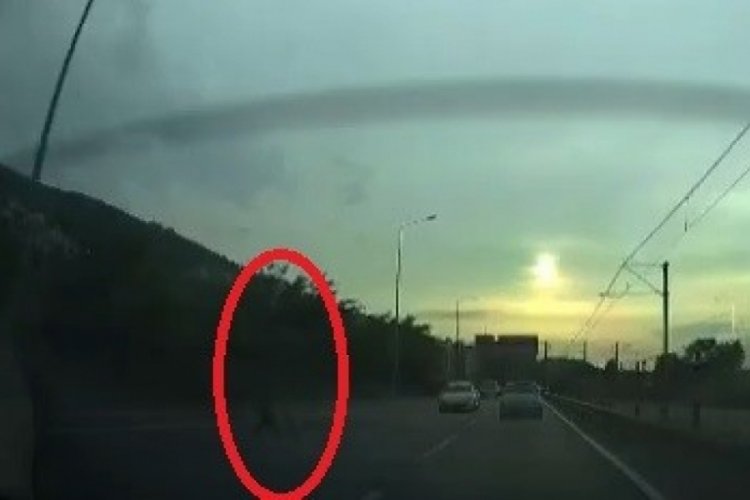 Bursa’da bir şahıs anayolda seyir halinde giden araçlara rağmen koşarak karşıya geçmeye çalıştı. O esnada süratle ilerleyen otomobil sürücüsü, çarptığı yayı metrelerce sürükledi. O anlar başka bir otomobilin araç içi kamerasına anbean yansıdı.