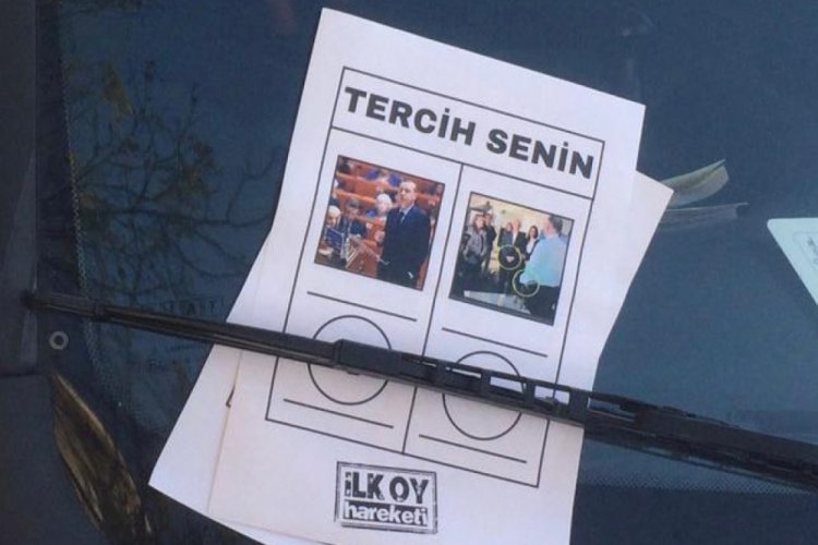 Dağıtılan broşürlerde ‘İlk oy hareketi’ damgası dikkat çekti. Paylaşılan fotoğrafların üzerine ‘Tercih senin’ notu düşülerek seçmenin fotoğrafları yorumlayarak oy kullanması yönünde yönlendirildiği görüldü.