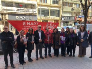 8 Mart Dünya Emekçi Kadınlar Günü dolayısıyla düzenlenen etkinlikte, kadınların eşitlik ve özgürlük mücadelesine dikkat çekildi. İlçe binası önünde gerçekleştirilen etkinlikte çok sayıda kadına çiçek hediye edildi.