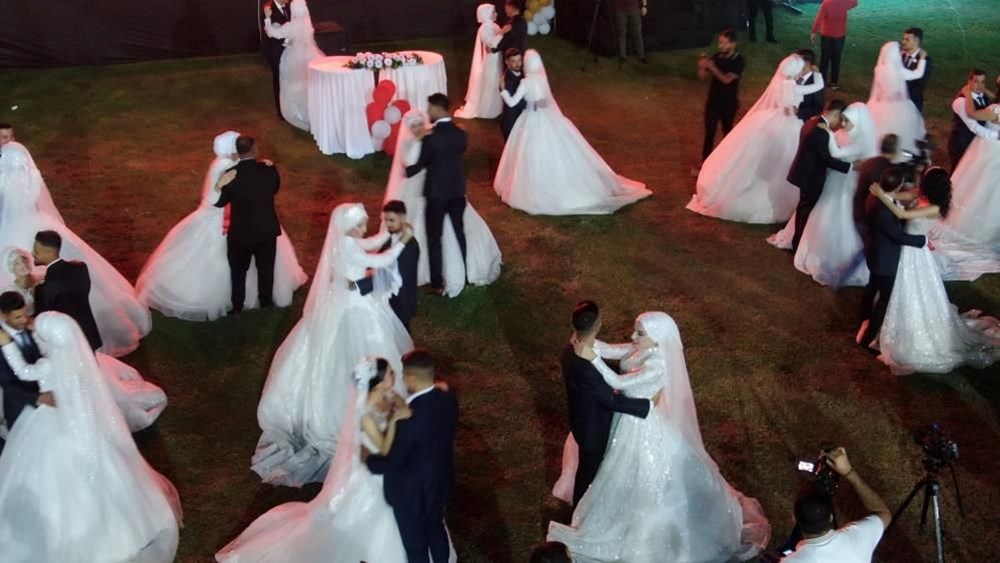 Düğün, çiftlerin toplu olarak dans etmesi ve protokol üyelerinin konuşmasıyla sürerken temsili olarak 1 çiftin nikahı kıyıldı. Genç çifte evlilik cüzdanları Hatay Valisi Mustafa Masatlı tarafından teslim edildi.