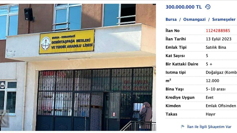 Bursa’da 8 yıl önce yap-işlet-devret modeliyle bir müteahhit tarafından yapılan devlet okulunun online satış sitesinde 300 milyon TL karşılığında satışa çıkarılmasının ardından Bursa Valiliği konuya ilişkin yazılı basın açıklaması gerçekleştirdi.