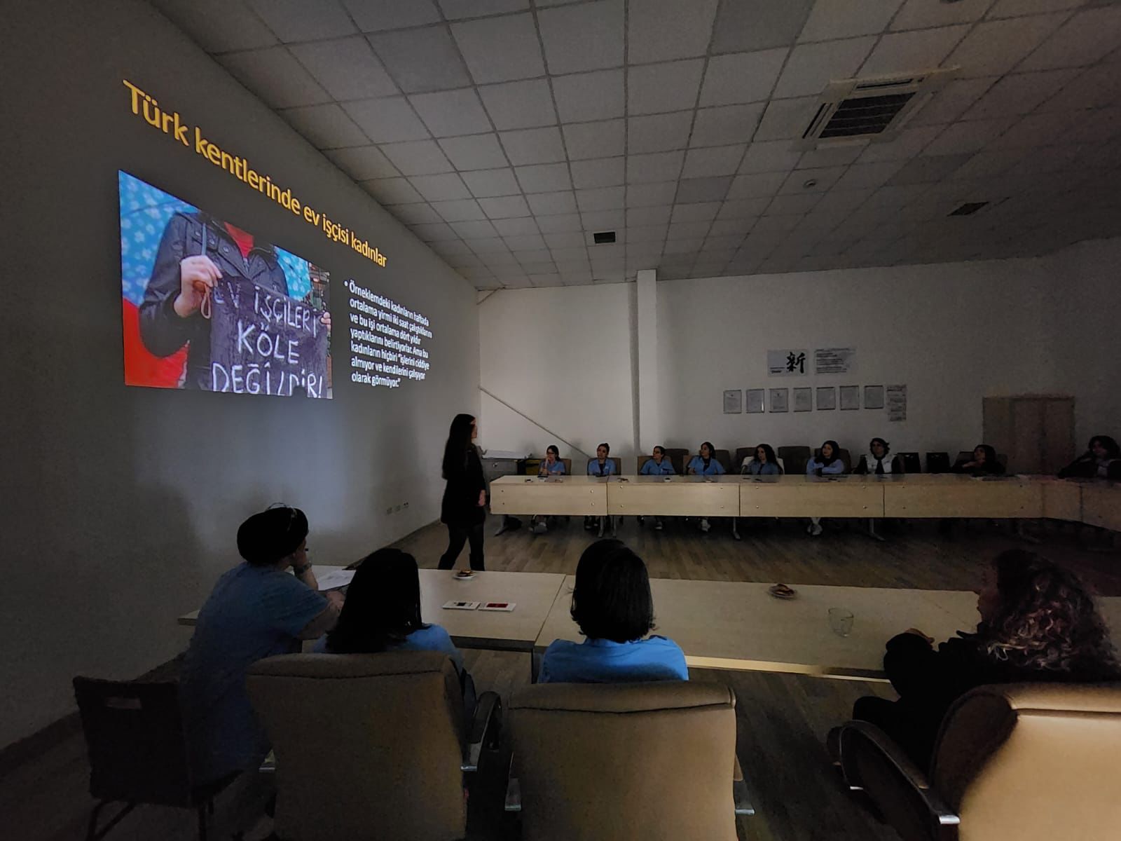 Programın devamında Antropolog ve Aile Danışmanı Gökçe Geyik, toplumsal cinsiyet eşitsizliği, cam tavan sendromu, toplumsal cinsiyet rolleri ve kraliçe arı sendromu konularında kapsamlı bir sunum gerçekleştirdi.
