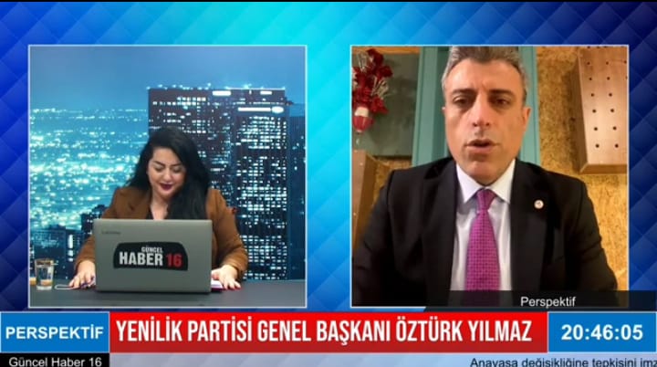 Yenilik Partisi Genel Başkanı Öztürk Yılmaz, Güncel Haber 16’da yayınlanan Özge Demir’in sunduğu Perspektif programına canlı yayın konuğu olarak katıldı.