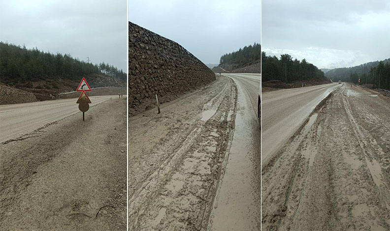 Bölgede süren yol yenileme çalışmaları sırasında etkili olan sağanak yağış, altyapısı henüz tamamlanmamış kesimlerde zemini çamura buladı. Araçların ilerlemekte güçlük çektiği yolda, yol kenarındaki trafik tabelalarının dahi çamur sıçraması nedeniyle görünmez hale geldiği gözlendi. Sürücüler, kaygan ve düzensiz zemin nedeniyle kaza riskinin arttığını belirterek, özellikle gece saatlerinde yolun daha da tehlikeli bir hal aldığını ifade etti.