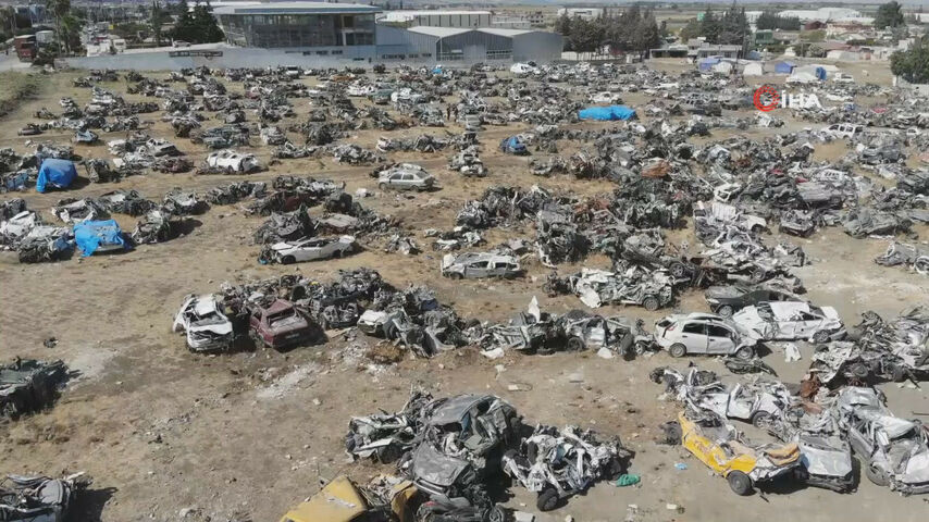 Depremin vurduğu Hatay’da enkaz altında kalarak hurdaya dönen araçlar, muhafaza altında bulundukları alanlardan hak sahipleri tarafından teslim alınıyor.