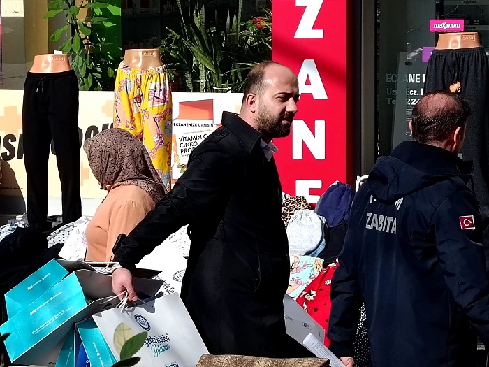 “Önceki gün bizim evin kapısı çalındı. Meşgul olduğum için ben ilgilenemedim, ama gelenler AK Parti örgütünden imişler. Kapıdan “Merhaba” deyip bir paket bırakıp gideceklermiş. İçini açmadan Yıldırım Belediyesi logolu kocaman..