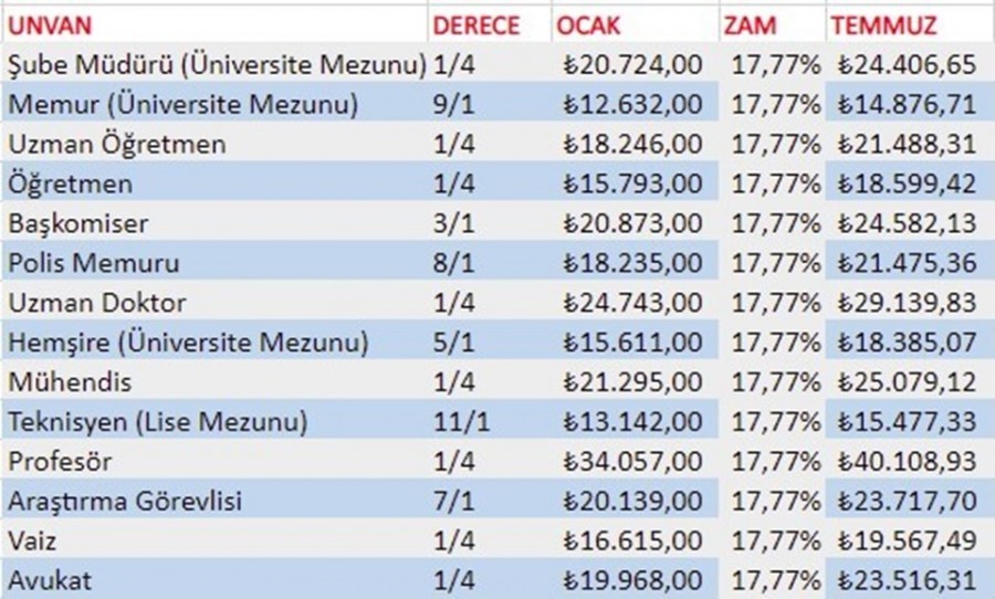 Toplu sözleşmeye göre memurlar yılın ilk 6 ayı için yüzde 8 zam almıştı. Memur ve memur emeklileri bu zammı aşan oranda enflasyon için fark almaya hak kazanıyor. Memurlara bu yılın ikinci 6 ayı için, yüzde 6 zam ve enflasyon farkı verilecek. Memurlar ikinci 6 ayda yüzde 6’lık sözleşme zammına ek olarak yüzde 11,77’lik enflasyon farkı alacak. Böylece memur ve memur emeklileri yüzde 17,77’lik zamma hak kazandı.