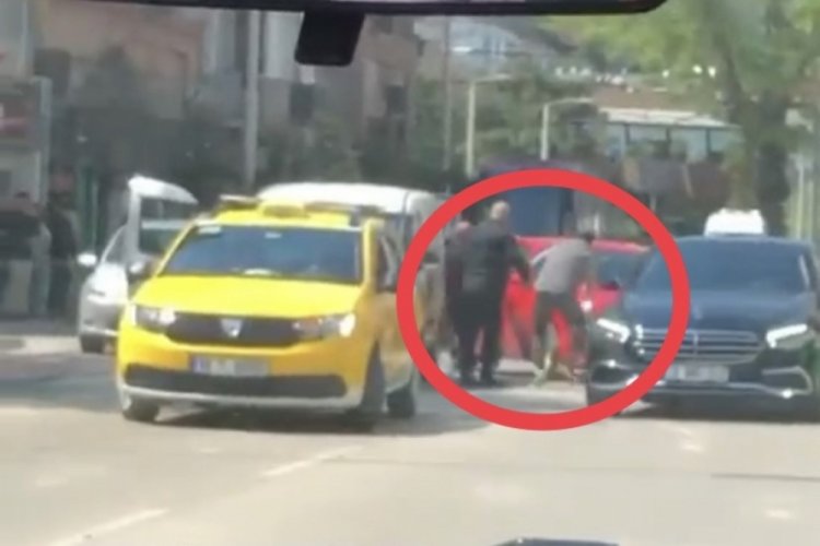Bursa’da iki sürücünün yol verme kavgası kameralara yansıdı.