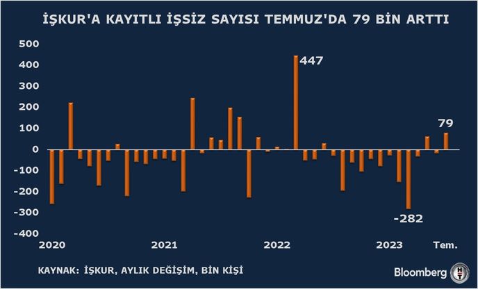 Buna göre kayıtlı işsiz sayısı 2 milyon 680 bin 951 olarak kaydedildi. Temmuz ayında kayıtlı işsizlik Haziran ayına göre yüzde 3 artış gösterdi.