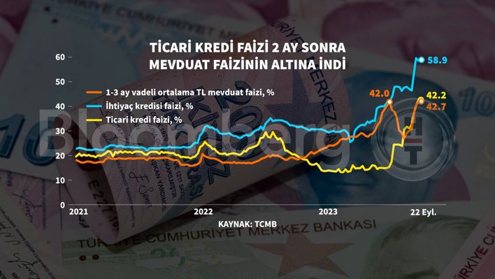 Mevduat faizlerindeki yükseliş kredi faizlerini geride bırakan bir ivmenin yaratılmasına da yol açtı. Aynı hafta itibariyle ticari kredi faizleri yüzde 42,2’de kaldı.