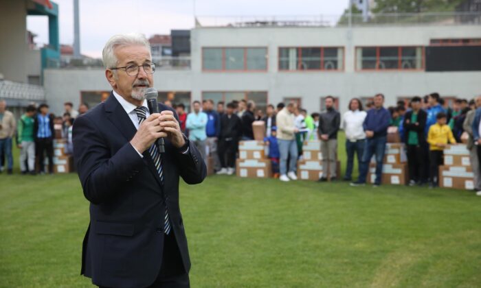 Konuşmaların ardından Nilüfer Belediye Başkanı Turgay Erdem, Nilüfer Belediye Başkan Yardımcısı Dr. Sibel Özer ve NASK Başkanı Osman Uçar ile birlikte 28 amatör spor kulübü temsilcilerine destek paketlerini teslim etti.