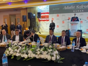 Mahmut Arıkan, Saadet Partisi Bursa İl Teşkilatı tarafından düzenlenen geleneksel “Adalet Sofraları” iftar programında partililer, farklı siyasi partilerin temsilcileri ve çok sayıda davetliyle bir araya geldi. Bursa’da Elegans Salonları’nda gerçekleştirilen programa yoğun katılım olurken, siyasi parti temsilcileri, şehit aileleri, gaziler ve sivil toplum kuruluşlarının temsilcileri aynı sofrada buluştu.