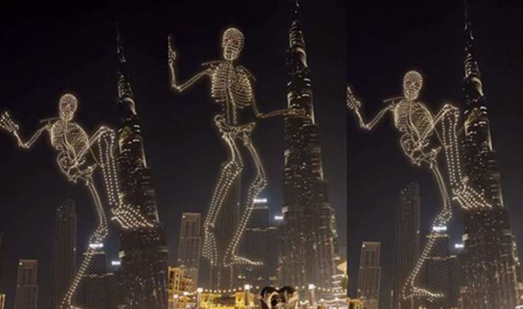 Dubai’deki Burj Khalifa binası yakınlarında, cadılar bayramı etkinlikleri kapsamında gece gökyüzünde beliren dev iskeletin görüntüleri ilgi çekti. Uzmanlar ise şovun gerçekliğini sorguluyor…