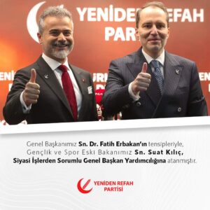 Kısa süre önce Yeniden Refah Partisi’ne katılan Gençlik ve Spor eski Bakanı Suat Kılıç, Siyasi İşlerden Sorumlu Genel Başkan Yardımcılığı görevine getirildi. Öte yandan AR-GE’den sorumlu Genel Başkan Yardımcısı Prof…