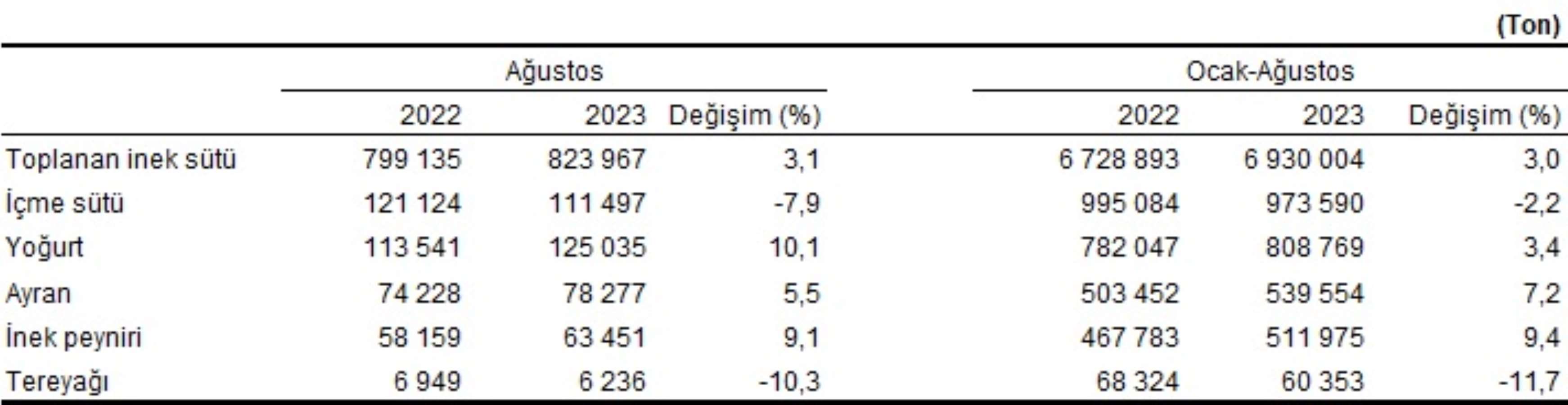 Ocak-Ağustos döneminde bir önceki yılın aynı dönemine göre tavuk yumurtası üretimi yüzde 4,2 artarken; tavuk eti üretimi yüzde 4,6, kesilen tavuk sayısı yüzde 7,5 ve hindi eti üretimi yüzde 11,9 azaldı.