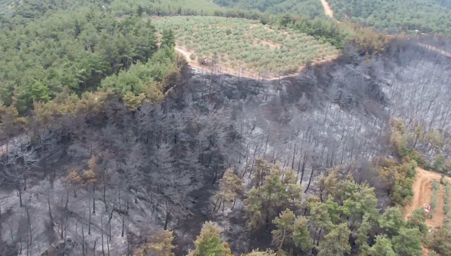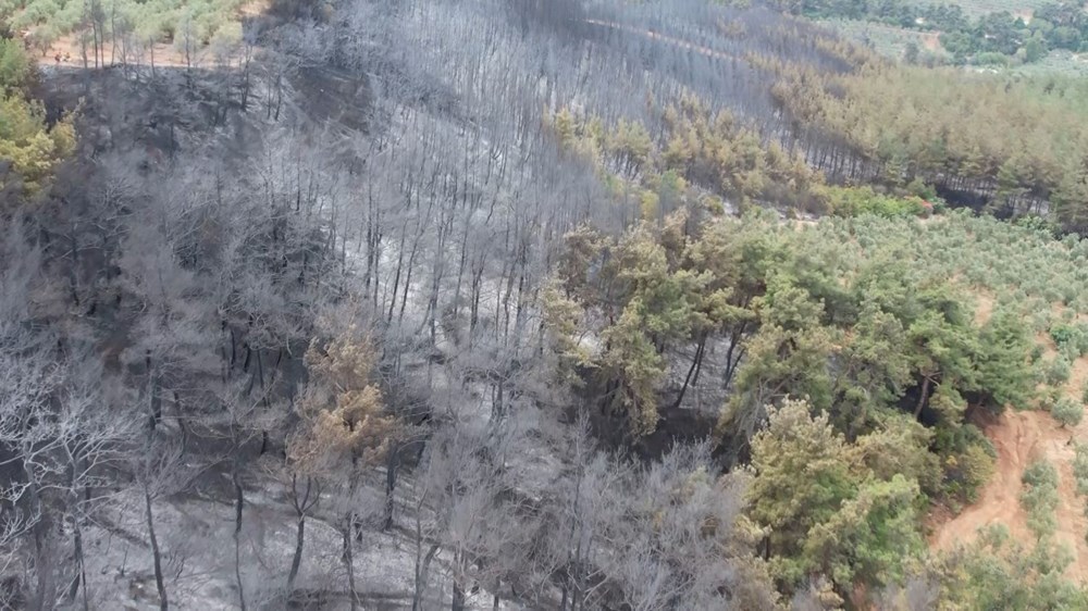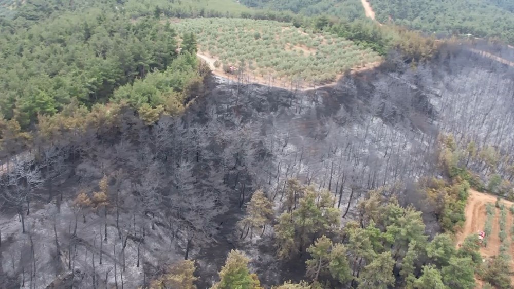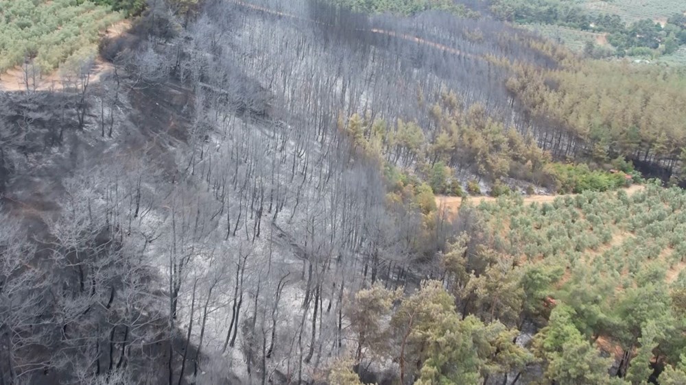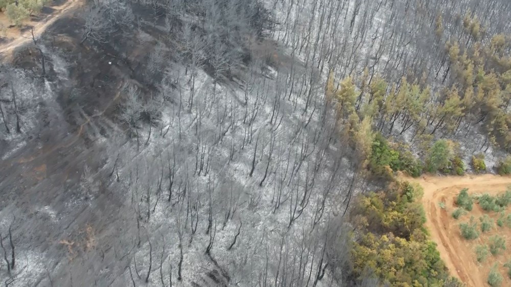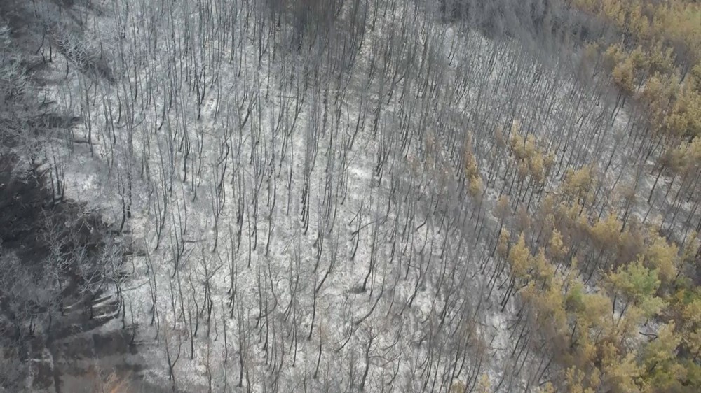Yangının bilançosu ise günün ilk ışıklarıyla havadan görüntülendi.