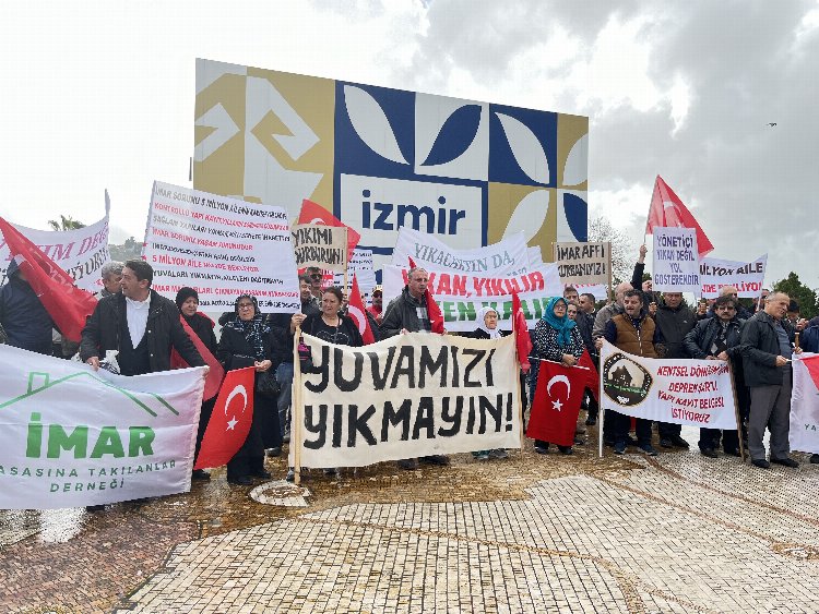 Konak Meydanı’nda bir araya gelen İmar Yasasına Takılanlar Derneği üyeleri, yapı kayıt mağduriyetlerinin giderilmesi için seslerini yükselttiler.