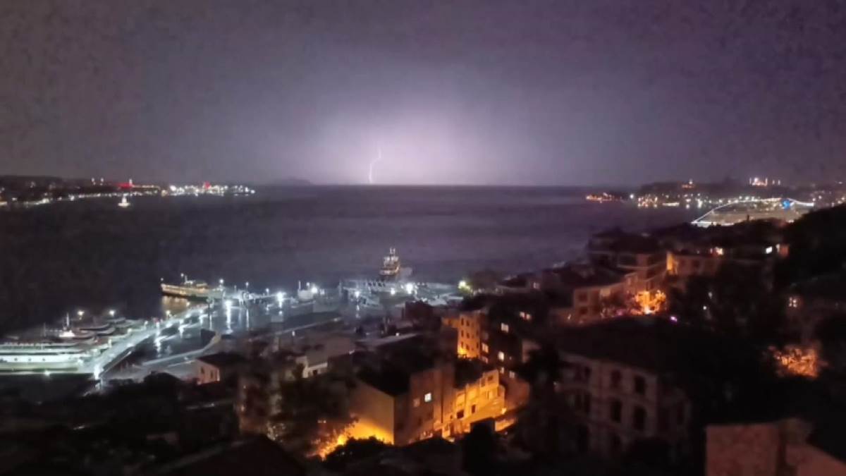 Yağış sırasında gökyüzü şimşeklerle aydınlanırken, Yavuz Sultan Selim Köprüsü çevresinde düşen yıldırım görüntülere yansıdı.