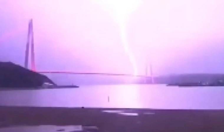 Yağış sırasında gökyüzü şimşeklerle aydınlanırken, Yavuz Sultan Selim Köprüsü çevresinde düşen yıldırım görüntülere yansıdı.
