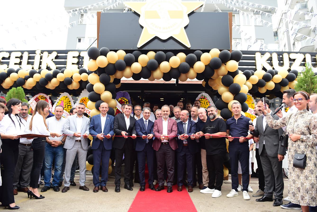 Bursa’nın ünlü döner markası Yusuf Çelik Et Kuzu Döner, Yıldırım Erikli’deki yeni şubesini görkemli bir törenle hizmete açtı. Vali Yardımcısı Şeref Aydın, Büyükşehir Belediye Başkanı Alinur Aktaş, AK Parti Bursa Milletvekilleri Ahmet Kılıç, Mustafa Yavuz ve Refik Özen, BTSO Yönetim Kurulu ve Meclis Başkanlık Divanı üyeleri ile PERDER Yönetim Kurulu üyelerinin de katıldığı açılış büyük ilgi gördü. Açılış kurdelesini beraberindekilerle kesen Büyükşehir Belediye Başkanı Alinur Aktaş, yeni işletmenin Bursa’ya hayırlı olmasını dilerken, Yusuf Çelik Et Kuzu Döner Yönetim Kurulu Başkanı Ramazan Tosun ise yakında Bursa’ya Osmangazi Bağlarbaşı’nda yeni bir şube daha kazandıracaklarını müjdeledi.